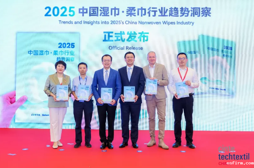 为了系统呈现当前中国湿巾和柔巾行业的市场结构、技术路径与消费动向,为行业相关方提供具备参考价值的行业分析与趋势判断,向消费者传递湿巾、柔巾相关知识,中产协联合行业骨干企业赛得利、河南逸祥共同编写了《2025中国湿巾·柔巾行业趋势洞察》。会上,李陵申、梁鹏程、李桂梅、Olaf Schmidt、杨自强以及赛得利集团无纺布业务研发与市场总监陈锐共同上台见证了《2025中国湿巾·柔巾行业趋势洞察》的发布。