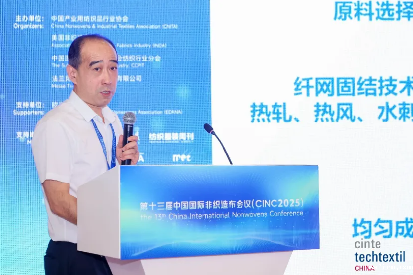 为深入研判非织造布行业面临的挑战与机遇,推动技术创新与全产业链协同发展,9月3日,由中国产业用纺织品行业协会、美国非织造布协会、中国国际贸易促进委员会纺织行业分会、法兰克福展览(香港)有限公司主办,欧洲非织造布协会支持的第十三届中国国际非织造布会议(CINC2025)于CINTE2025展会期间召开。本届会议以“破局·重构”为主题,汇聚行业机构、领军企业及专家学者,通过技术路径探讨、权威报告发布与高端对话等环节,共同剖析非织造布产业发展格局的演变,深入探讨新形势下非织造布行业所面临的战略机遇与发展方向。