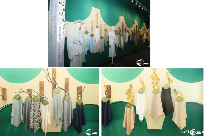 “优选绿色”区紧扣全球可持续发展主题,集中呈现使用原液着色涤纶、再生涤纶、Naia™、海藻纤维、莱赛尔、亚麻等环保原料的高品质面料。产品具备如FSC森林管理委员会认证、GRS全球回收标准、Standard 100 by Oeko-Tex®等多项国际生态认证,展现了柯桥面料在生态环保与品质管控方面的合规性与前瞻性,更彰显了柯桥纺织企业作为绿色供应链关键力量的责任担当。