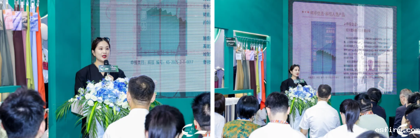 在活动中,璞兴纺织、中通纺织、托普纺织品三家获选面料企业代表分别对获选A类的高密织造面料(科技类)、天丝羊毛混纺面料(时尚类)、再生锦纶与宾霸铜氨丝混纺面料(绿色类)进行了亮点介绍。