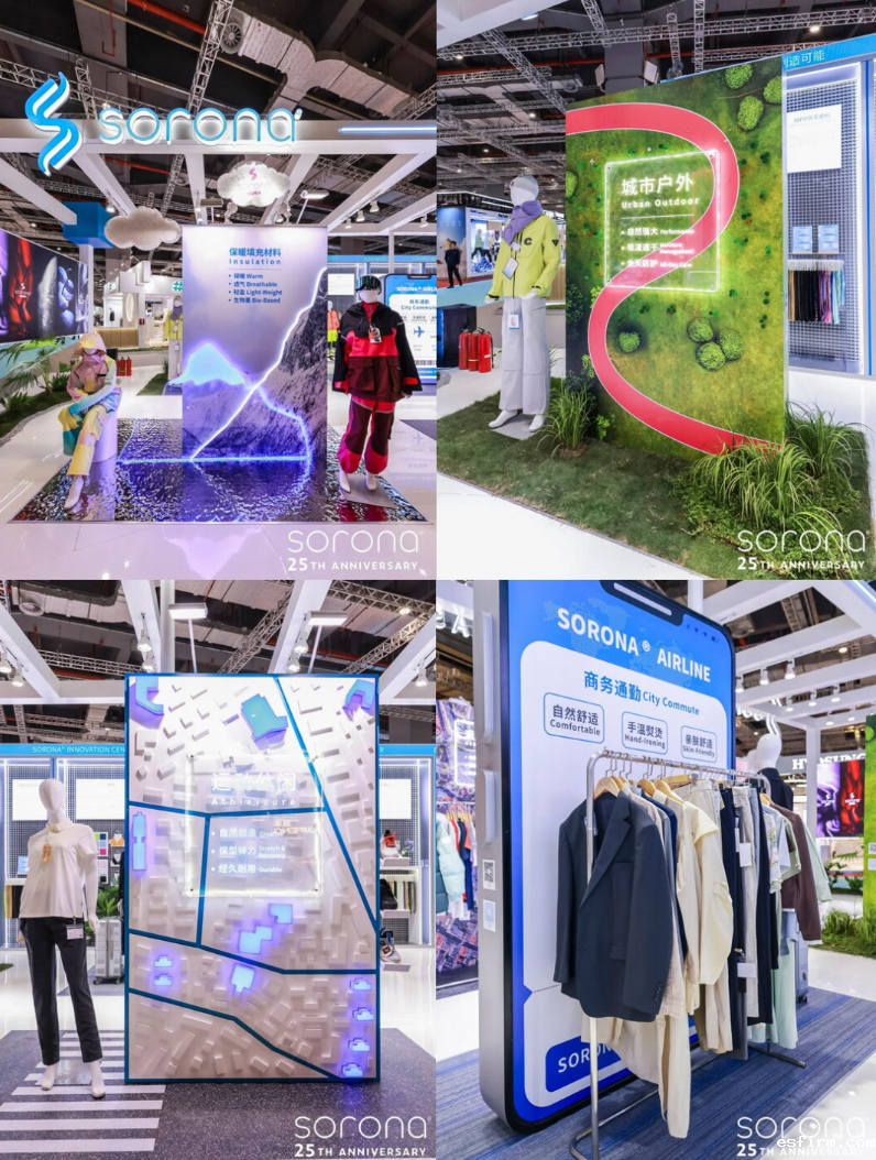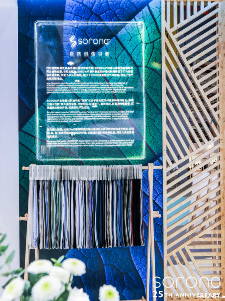 更能通过“城市户外”、“运动休闲”、“商务通勤”、“保暖填充材料”四大主题应用区,看到SORONA®生物基材料应用之广泛。其中,SORONA®Aura保暖填充材料,更是以保暖、透气、轻盈以及生物基优势,吸引了诸多需求买家的目光,这一保暖填充材料将给保暖领域提供更多选择。