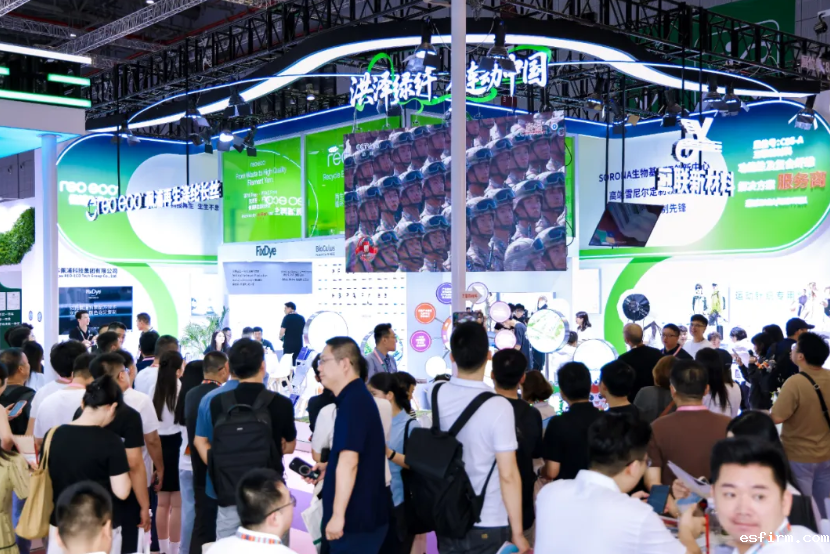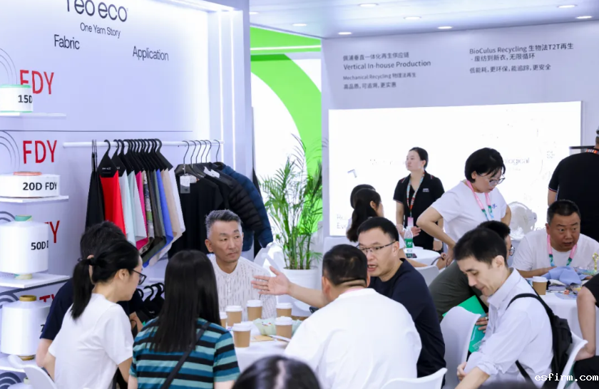 另一边,作为专注绿色环保的高新技术企业,佩浦科技也在展会上大放异彩。近年来,佩浦科技构建起一套从废旧纺织品及塑料回收,到再生聚酯切片生产,再到再生涤纶长丝制造的全产业链体系,实现了再生涤纶长丝生产的一体化运作。“这次我们带来了全球首个‘零化学’再生涤纶长丝。”佩浦科技联合创始人王志鹏介绍,这款“零化学”再生涤纶长丝实现了三大升级。一是安全升级,产品无双酚、不含氯,拥有双清洁标签,让安全成为最坚实的底气;二是材料升级,产品创新性采用80%消费后塑料瓶+20%消费后纺织品的组合,让“废物”真正变“宝物”;三是节能升级,碳足迹降低20%以上,效益提升10%以上,在绿色发展的道路上迈出了坚实一步。