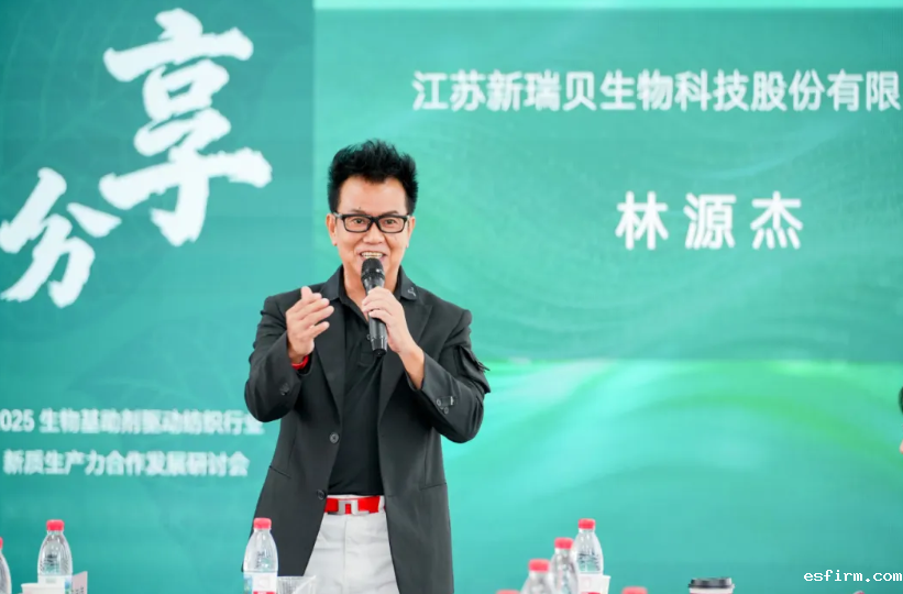 本次研讨会重点展示了生物基助剂在纺织全产业链中的科技赋能与绿色价值。作为生物基新材料领域的代表企业之一,江苏新瑞贝生物科技股份有限公司分享了其在生物基助剂方面的核心技术,包括生物基浆料、前处理、染色及后整理助剂等全线产品,并介绍了其依托瑞邦检测平台所构建的“检测-认证-吊牌”一体化服务模式,为行业提供生物基含量检测与认证溯源支持,为推动企业实现真正意义上的“绿色、透明、可信”提供了技术保障和落地路径。