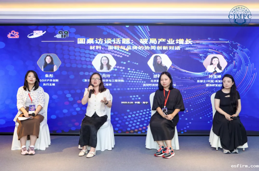 在圆桌访谈环节,主持人GOIF户外创新执行总编朱彤与东华大学环境科学与工程学院高级工程师陈向玲,北京服装学院教授、运动时尚创新研究院院长邵新艳,亚瑟士(中国)商贸有限公司服饰研发经理孙玉婷以“破局产业增长”为主题,围绕材料创新方向、研发成果转化、生活方式变革等内容展开深度对话,勾勒出以技术创新为基石、以产学研合作为桥梁、以市场需求为导向,深度协同材料、面料与品牌三方资源,迈向价值共生新生态的发展路径。