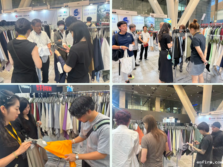 “柯桥优选”此次展出的精品面料,正是针对日本市场需求的“定制化呈现”——科技面料主打凉感、防紫外线、抗菌防臭、吸湿速干等功能,完美契合日本运动户外服饰市场对功能性的多元要求;绿色面料采用再生涤纶、雅赛尔®、莫代尔、莱赛尔等环保材料,其中适配内衣、家居服的面料产品收获大量关注;融合中日审美的时尚面料,则在简约设计中暗藏细节巧思,吸引多位采购商拍照观看。此外,每款展示面料均附有信息二维码,扫码即可实时查看产品的详细参数与检测报告,为采购决策提供了可靠依据,赢得了品牌方的高度认可。