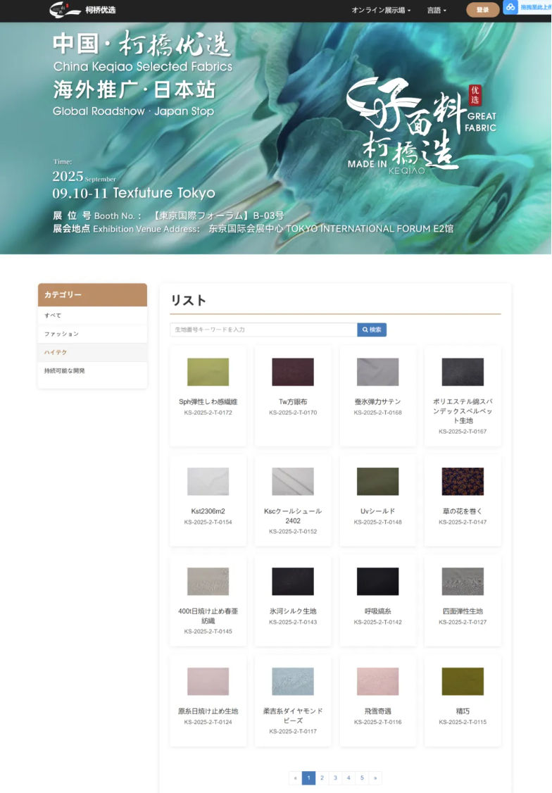 9月10-11日,“柯桥优选”走进2025日本东京国际功能性纺织服装展览会(TEXFUTURE TOKYO),开启了2025“柯桥优选”海外推广的首站旅程。在这场聚焦可持续与功能性纺织品的国际创新盛会中,来自东进新材料、杨世新材料、生然时尚、万山纺织等55家“柯桥优选”企业的321款高品质面料成为了展会中备受瞩目的焦点。