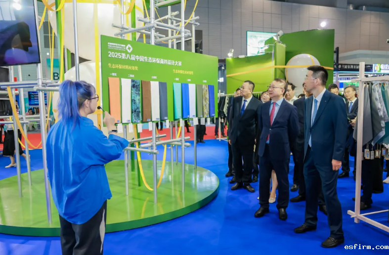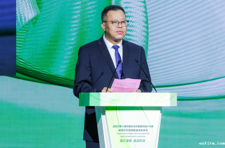“当前,全球气候治理深入推进、可持续发展成为国际共识。今天,盛泽再度携手中国生态环保面料设计大赛,既是基于对大赛理念的深刻认同,也是出于对创新转型的执着追求。”徐惠林在讲话中强调,盛泽坚定站在产业变革的最前沿,用生态筑牢发展根基,持续推进环境治理,深入打好污染防治攻坚战;用环保巩固发展屏障,高标准建设吴江纺织循环经济产业园,构建印染产业全链条绿色循环发展体系;用创新突破发展瓶颈,重塑前沿纤维“基因组”;用绿色拥抱发展未来,以“双碳”推动技术变革、经济发展。