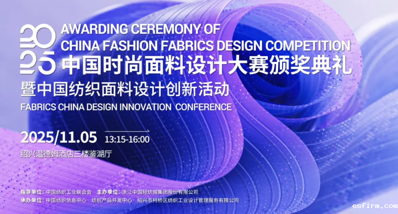 在设计端,数字化决策体系正高效赋能产品开发;在消费端,绿色可持续与功能场景化需求正在成为市场主流。如今的面料设计,已跳出生产开发的单一维度,成为契合消费市场需求、助力品牌焕新的关键引擎,持续驱动着行业的创新与转型。为进一步激发设计活力、汇聚产业智慧,2025中国时尚面料设计大赛颁奖典礼暨中国纺织面料设计创新活动将于11月5日在绍兴柯桥举行。