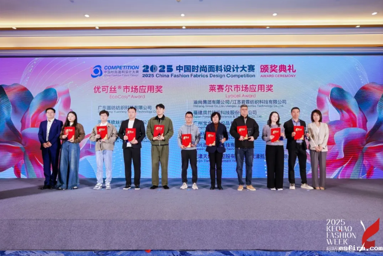 中国时尚面料设计大赛今年再度与赛得利集团携手,将环保理念深植企业基因,持续引领下游企业绿色升级。在11月5日举办的2025中国时尚面料设计大赛颁奖典礼上,来自迪尚集团有限公司&江苏君霖纺织科技有限公司、福建凤竹纺织科技股份有限公司、广州宝合笠纺织品有限公司、绍兴志旭纺织科技有限公司、杭州梢嘿贸易有限公司、天津天纺投资控股有限公司&天津抵羊智造有限公司的产品获得“莱赛尔市场应用奖”,来自浙江美欣达纺织印染科技有限公司、浙江嘉欣丝绸股份有限公司、广东圆纺纺织科技有限公司的产品获得“优可丝®市场应用奖”。这些面料均充分挖掘了莱赛尔和优可丝®的产品优势,色彩丰富,设计感强,在保证面料舒适亲肤的触感下,提高了时尚设计感,满足了消费者对面料的需求。