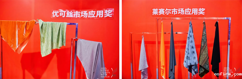 在柯桥时尚周期间举办的2025柯桥时尚设计展(秋季)上,特别展示了本届大赛荣获“莱赛尔市场应用奖”和“优可丝®市场应用奖”的产品。