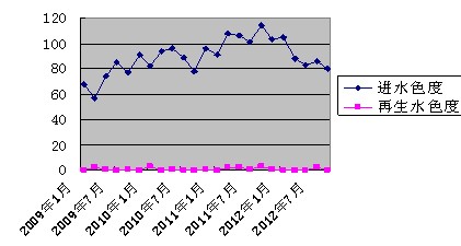 RO系统对进水色度一直保持良好的去除率,再生水的色度指标能满足生产用水的要求。