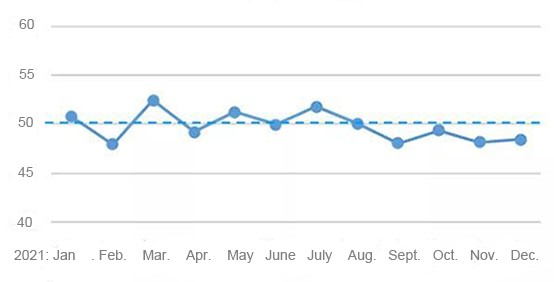 In December, the raw material purchasing index came in at 48.32, down 0.74 over November; the raw material inventory index came in at 48.7, unchanged from the previous month; the production index was 49.32, up 0.3 from November, maintaining the growth; the product sales index came in at 46.93, down 0.48 from November; the product inventory index was 49.58, seeing a year-on-year rises of 1.06 from November; and the business index came in at 47.96, increased by 0.08 from the previous month.