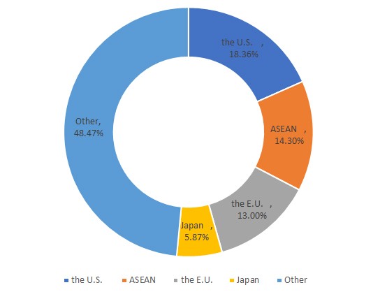 Figure 2: Share of China’s Textile and Apparel Exports in Aug.2023 (By Destinations)