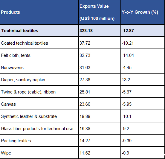 Table 2: The Exports of Main Products in China’s Technical Textile Industry in the First Ten Months, 2023