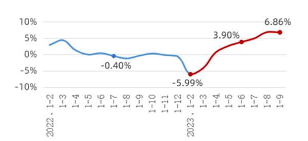From March onwards, the industry has sustained a notable level of overall operating load. Taking the direct-spun polyester filament as an example, it has yielded positive results with an average operating load of around 84% during the second quarter and about 90% in the third quarter. Amidst the customary peak season in October, the demand from downstream markets remains strong, and the average operating load rate maintains a 90% level. Furthermore, in light of the Asian Games, there was a noticeable decrease in output in the Xiaoshan and Shaoxing districts; however, business activities promptly resumed following the conclusion of the National Day festivities.