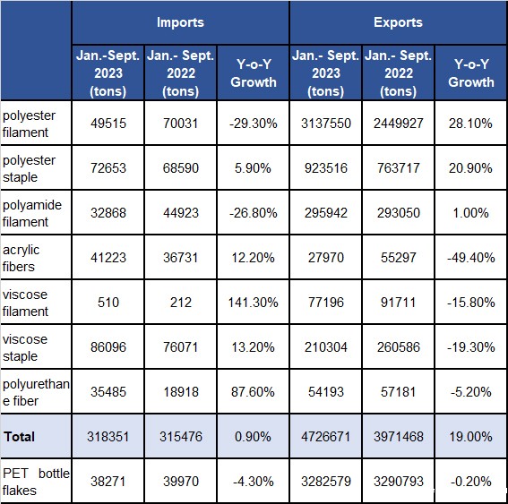 Table 2: Foreign Trade of Chemical Fiber Products in Q1-Q3