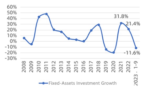 Figure 2: Fixed-Assets Investment Growth of the Chemical Fiber Industry from 2008