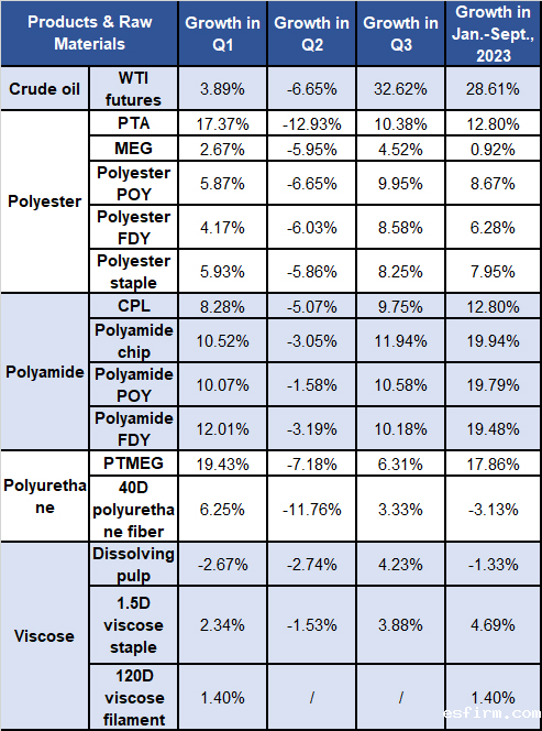 Table 1: Price Change of Main Chemical Fibers and Raw Materials