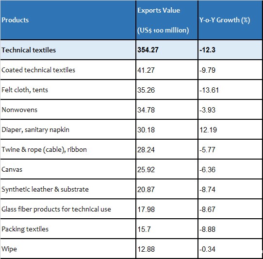 Table 2: The Exports of Main Products in China’s Technical Textile Industry in Jan. – Nov., 2023