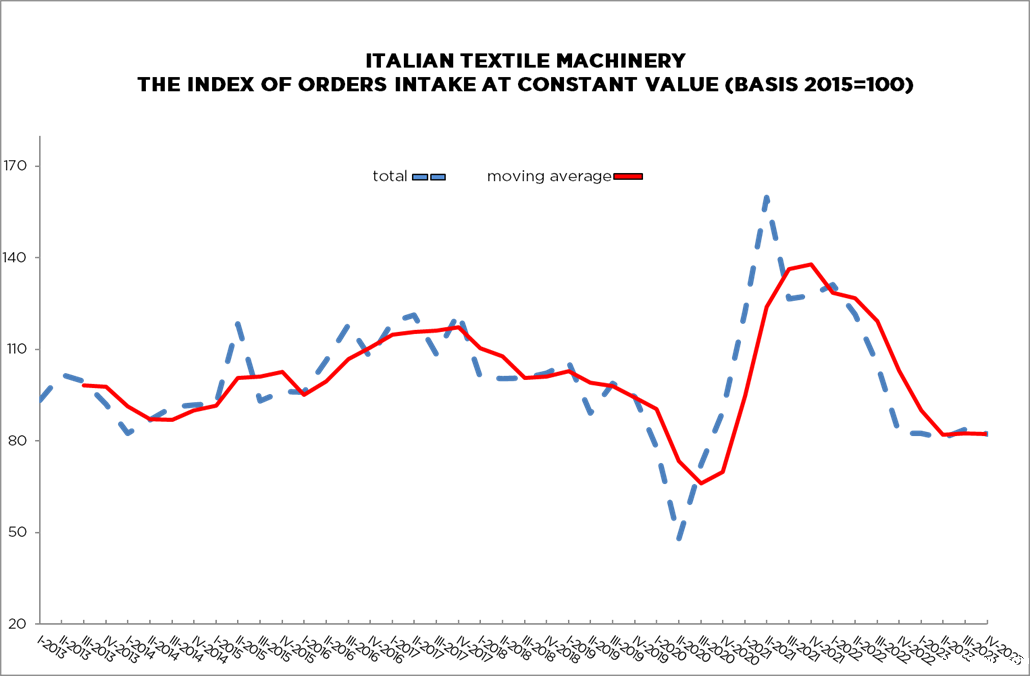 In the fourth quarter of 2023 Italian textile machinery orders index, drawn up by the Economics Department of ACIMIT, the Association of Italian Textile Machinery Manufacturers, appears to be stationary compared to data recorded for the same period in 2022. In terms of absolute value, the index stood at 82.4 points (basis: 2015=100).