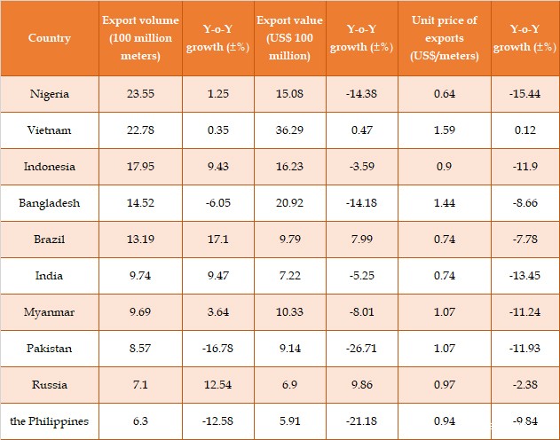 Table: Performance of Part Destinations of China’s Eight Major Categories of Printed and Dyed Products in 2023