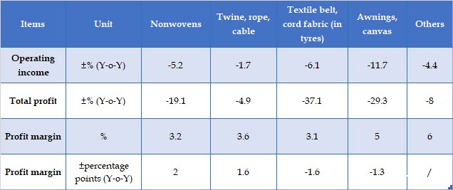 Table 1: Growth Rate of Major Economic Indicators of China’s Technical Textile Industry, 2023 (Above Designated Size)