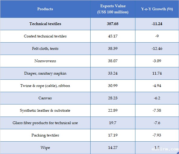 Table 2: The Exports of Main Products in China’s Technical Textile Industry in 2023