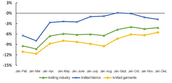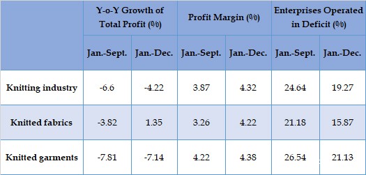 In 2023, the total profits of knitting enterprises above designated size fell 4.22% year-on-year, 2.38 percentage points narrower than that of the first three quarters. Knitted fabrics performed better than knitted garments. The profits from knitted fabric increased by 1.35%, showing positive growth, while profits from knitted garments fell by 7.14% year-on-year. Other main economic indicators are as follows.