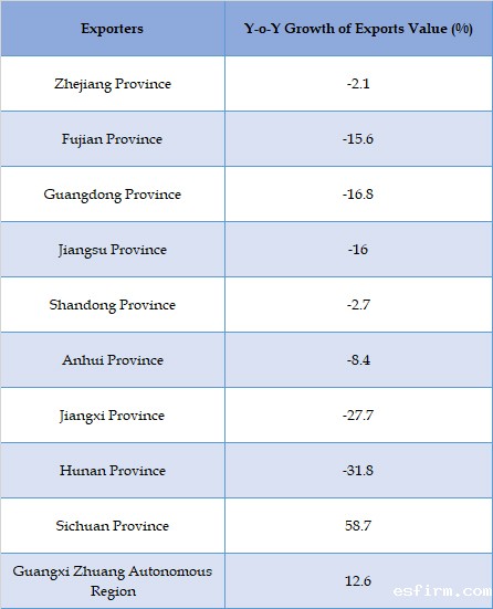 Figure 2: Export Growth of China’s Knitting Industry in 2023 by value