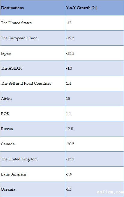 Table 1: China’s Apparel Exports by Destinations in 2023