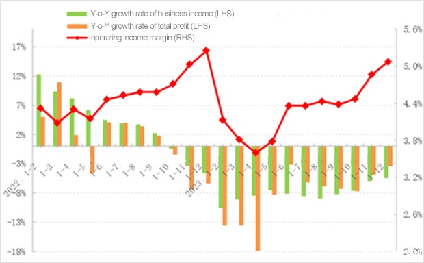 According to the National Bureau of Statistics, the main business income of apparel enterprises above the designated size totaled about CNY 1.21 trillion, with a year-on-year decline of 5.4%; the total profit was CNY 61.38 billion, down by 3.39% year-on-year. The margin rate of operating was 5.07%, 0.11 percentage points higher than 2022. 20.8% of apparel enterprises above the designated size operated in deficit, 2.07 percentage points higher than that of 2022.