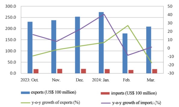 Figure 1: Foreign Trade of China’s Textiles and Apparel from Oct. 2023-Mar. 2024
