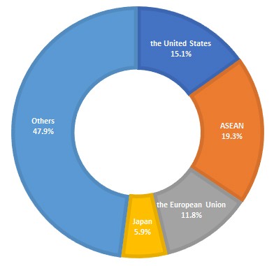 China’s textile and apparel exports perform better than the national trade in goods. Among the main destinations, the exports of the United States, ASEAN and the European Union grew by 3.5%, 6.2% and 0.6% year-on-year, while that to Japan narrowed. The countries along the “Belt and Road” Initiative are still the main booster for textiles and apparel exports, accounting for 55.9% of total exports.