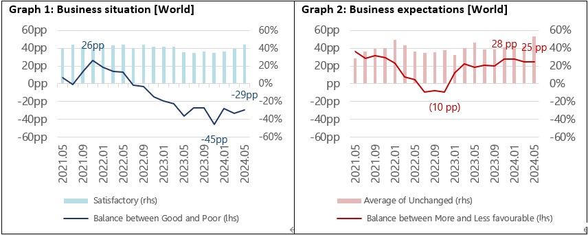 The May 2024 ITMF Global Textile Industry Survey (GTIS) indicates a continued stagnation in the textile business climate, with a marginal improvement of the economic situation due to more companies deeming business “satisfactory”. On the other hand, business expectations have stagnated in positive territory for a year, reflecting optimism rather than actual improvement, as the entire supply chain suffers from a lack of orders and high costs that affect profit margins.