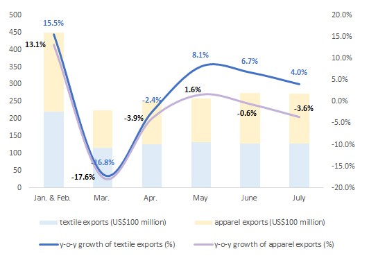 Figure 1: Monthly Statistics of China’s Textile and Apparel Exports in Jan.-Jul.