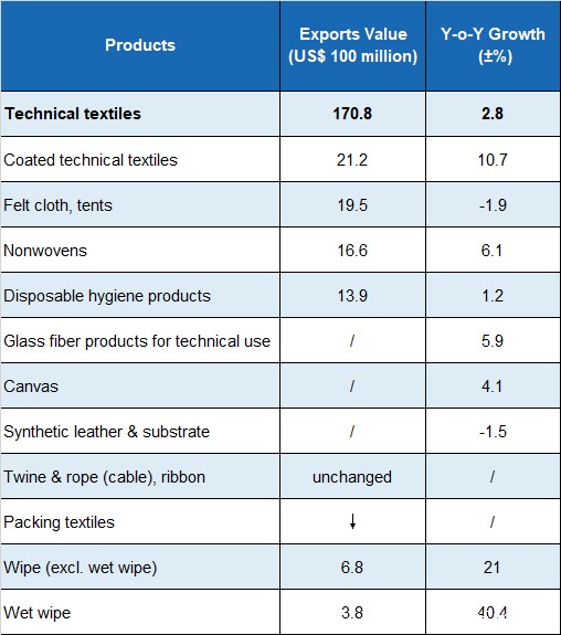 Table 2: The Exports of Main Products in China’s Technical Textile Industry in Jan.-May, 2024