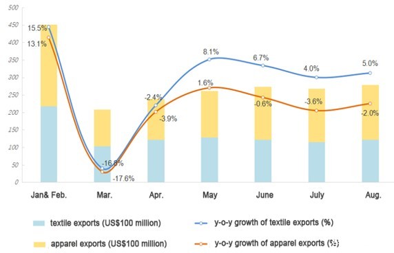 Figure 1: Monthly Statistics of China’s Textiles and Apparel Exports in Jan.-Aug.