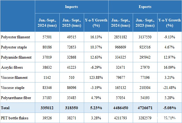Table 2: Foreign Trade of Chemical Fiber Products in the First Three Quarters of 2024