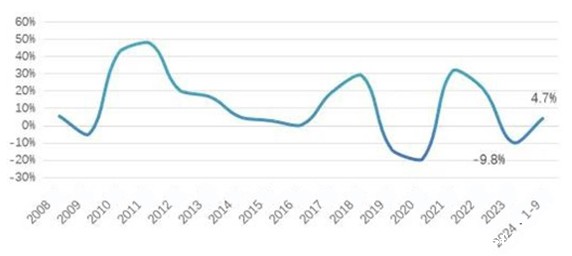 Figure 2: Fixed-Assets Investment Growth of the Chemical Fiber Industry from 2008 to Jan.-Sept., 2024