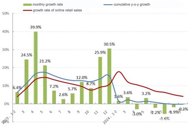 Since the beginning of this year, China’s apparel domestic market has shown a sustained slowdown in growth. Into the third quarter, driven by the new round of stable growth policy measures and the summer economy boost, the domestic sales have improved, and the monthly decline gradually narrowed. In addition, the pulling effect of new modes of consumption, such as live e-commerce, short-video e-commerce, and instant retailing, was obvious. In the first three quarters, the online retail sales of wearable goods saw 4.1% year-on-year growth, 5.5 percentage points lower than the same period in 2023.