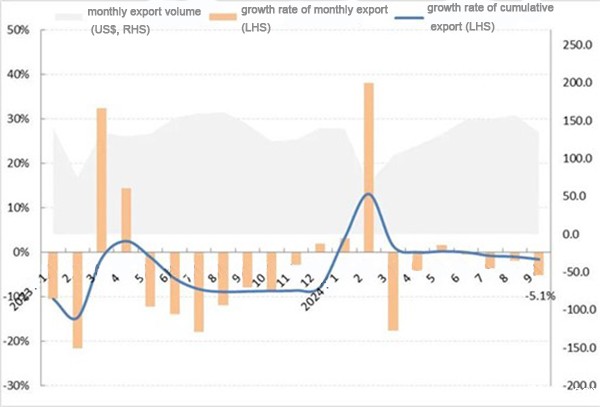 According to the Customs Newsletters, China’s apparel and accessories exports totaled US$ 118.11 billion in the first three quarters, decreasing by 1.6% year-on-year. From a monthly perspective, apparel exports started with a steady rise, but the pressure increased later. From the performance of export volume and price, the export volume increased while the average unit price decreased. The main reasons include that consumers are more inclined to purchase low-priced goods, while the proportion of cross-border e-commerce exports with a lower unit price has surged significantly.