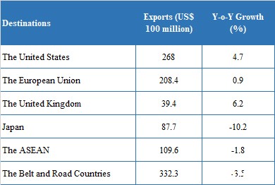 From the perspective of the major market, the export market witnessed an obvious diversification trend. China’s apparel exports to conventional markets showed resilience. Among them, the exports to the United States, the European Union and the United Kingdom grew year-on-year, and the decline rate of exports to Japan narrowed.