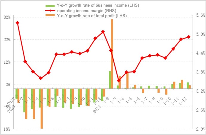 The margin rate of operating was 4.91%, 0.06 percentage points lower than in 2023 but 0.67 percentage points higher than the first three quarters of 2023. 20.07% of apparel enterprises above the designated size operated in deficit, 1.03 percentage points higher than that of 2023.