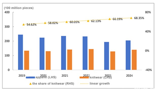 Figure 2: China’s Knitwear Output and Share from 2019 to 2024