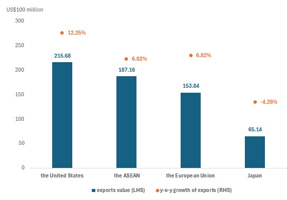 Figure 5: Export Value and Y-o-Y Growth Rate of China’s Knitted Products to Major Markets in 2024
