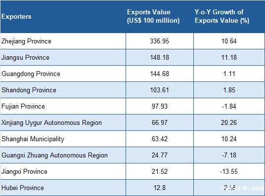 From the point of view of local customs data, Zhejiang Province, Jiangsu Province and other key areas of the eastern seaboard maintained growth momentum. Besides that, Xinjiang Uygur Autonomous Region also performed well. On the one hand, the Xinjiang textile industry chain is becoming ever more comprehensive, laying a solid foundation for industrial development. On the other hand, the establishment of the Xinjiang Pilot Free Trade Zone, as well as the rapid growth of trade in Central Asia and the increase in re-exports, further boosted the exports and year-on-year growth rate of Xinjiang.