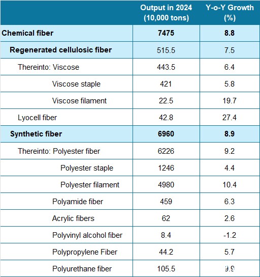With a high capacity base and high capacity utilization rate, chemical fiber output grew faster in 2024. According to the China Chemical Fibers Association, chemical fiber output in 2024 totaled 74.75 million tons, up 8.8% year-on-year (Table 1).