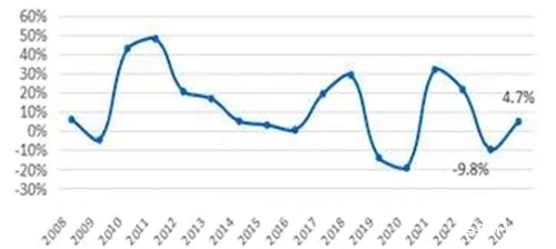 Figure 2: Fixed-Assets Investment Growth of the Chemical Fiber Industry from 2008 to 2024
