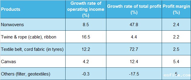 In terms of economic efficiency, the operating revenue and total profit of enterprises above designated size in the technical textiles industry in the first quarter this year grew by 6.7% and 10.9% year-on-year, respectively, and the operating profit margin was 3.3%.