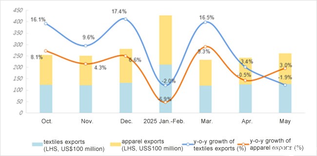 Figure: Monthly Statistics of China’s Textiles and Apparel Exports from Oct. 2024 to May, 2025